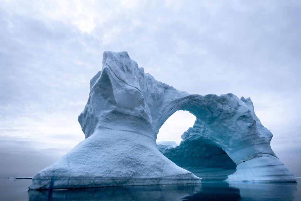 Navegar en zodiac en Groenlandia, además de ser la forma más viable, es una experiencia indescriptible. El tamaño, formas y colores de los icebergs son tan variadas como inimaginables. En ocasiones, las nubes están tan bajas que se confunden con la brisa marina y dan lugar a un paisaje aterradoramente bello sin referencias, y donde se entiende la variedad que puede presentar el color blanco. En cambio en otras, cuando el mar está en calma y el ambiente limpio, pueden verse gigantes como esta “catedral” cuyas dimensiones se engrandecen especialmente cuando se reflejan en un mar ilusoriamente de mercurio.